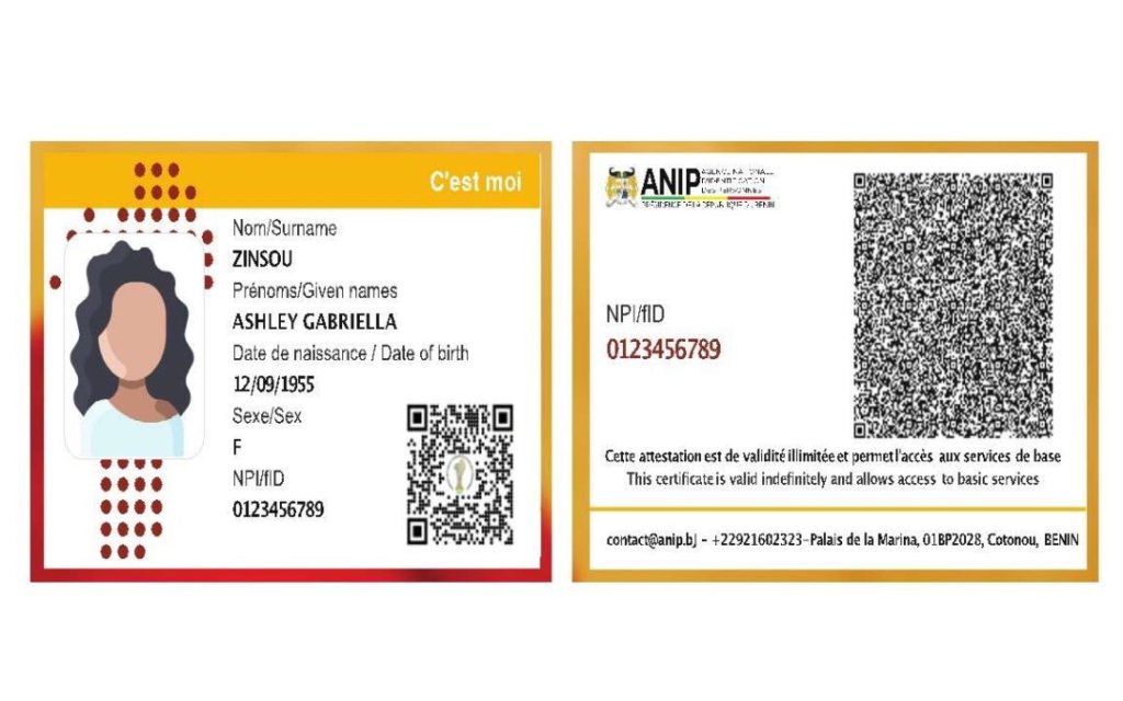 Le Bénin a lancé en 2020 la carte d’identité biométrique. La carte est obligatoire pour tous les citoyens béninois âgés de 18 ans et plus. Elle est délivrée par l’Agence nationale d’identification des personnes (ANIP).